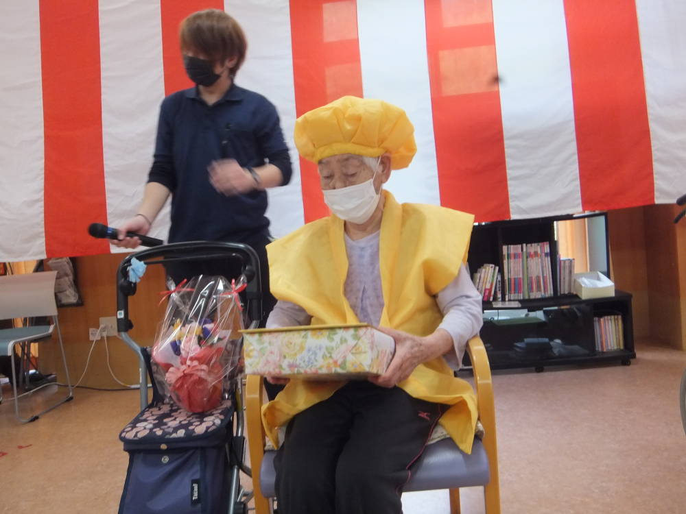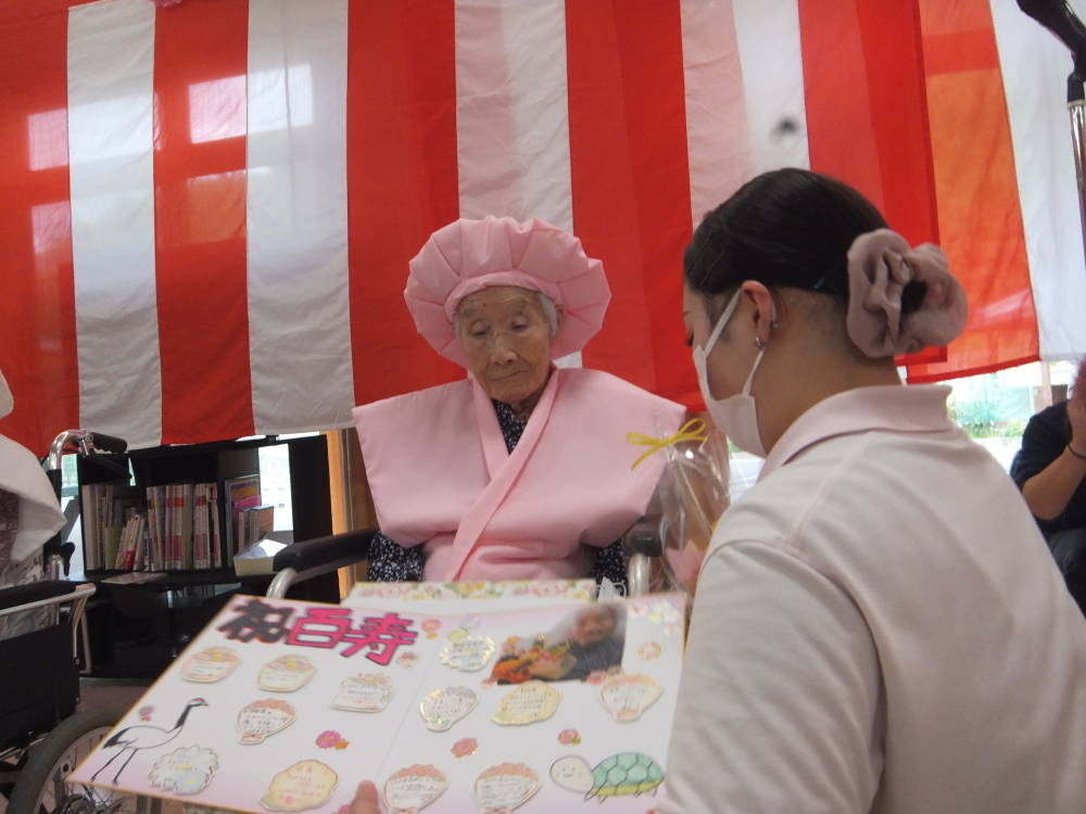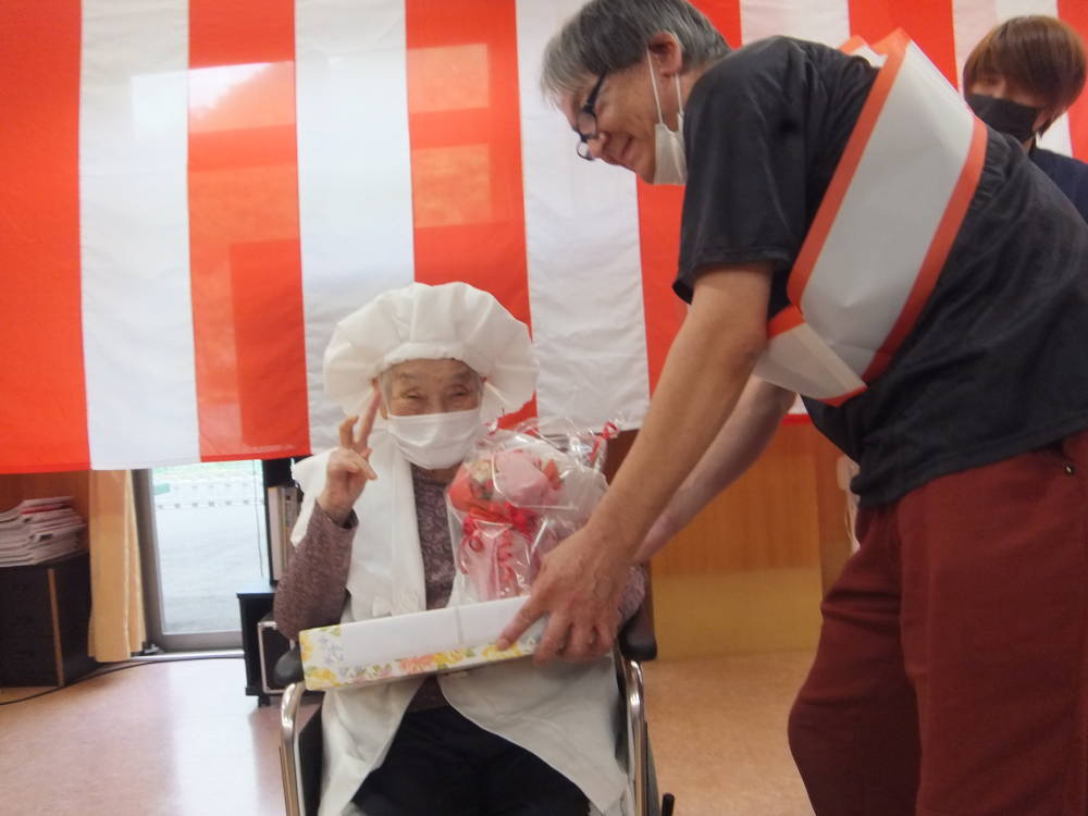代表として米寿(88歳)、白寿(99歳)、百寿(100歳)の方に記念品と花束贈呈をさせていただきました。