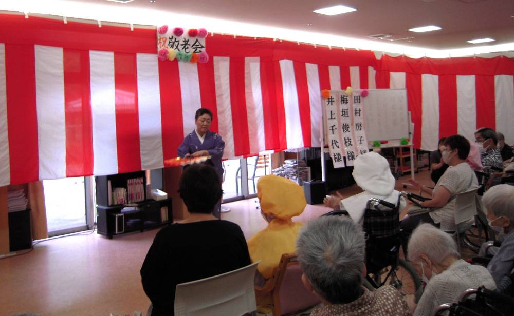 ボランティアで「なでしこ」様に来ていただき日本舞踊を中心に披露いただきました。